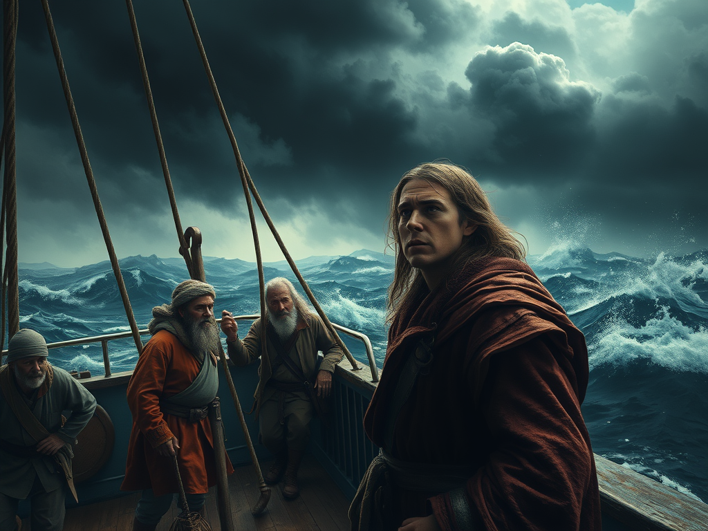 “Everyone, pray to your gods!” shouted the captain, his voice barely audible over the raging storm.